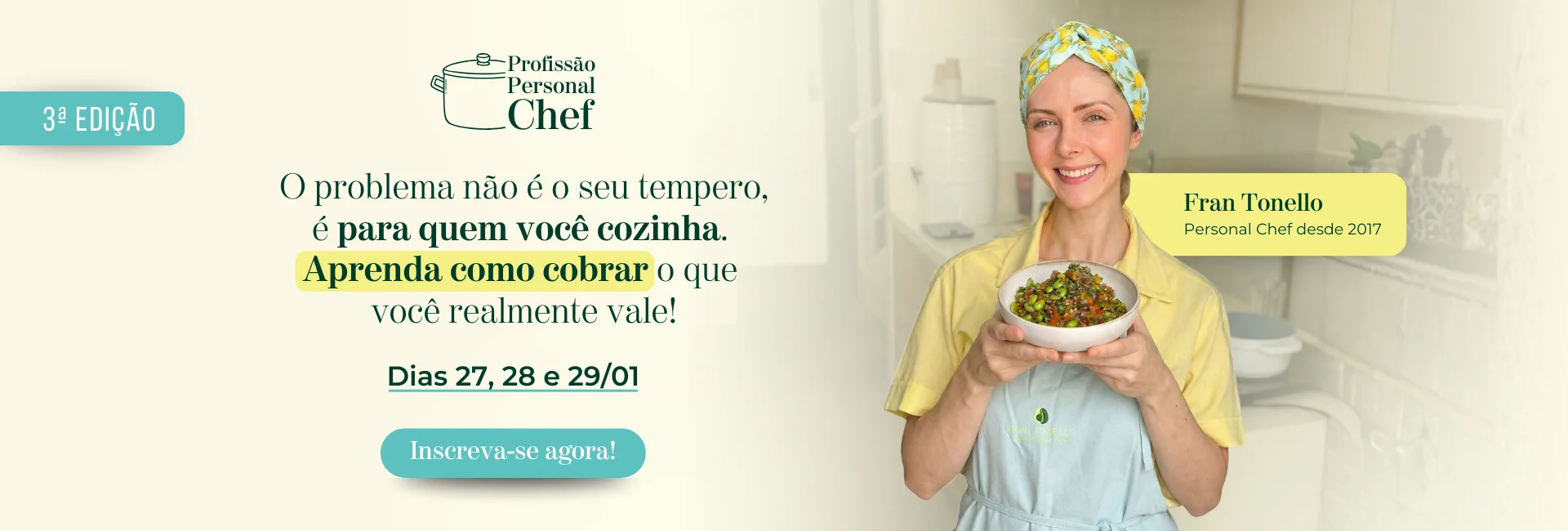- Idealizadora da Escola Fran Tonello e Personal Chef desde 2017.